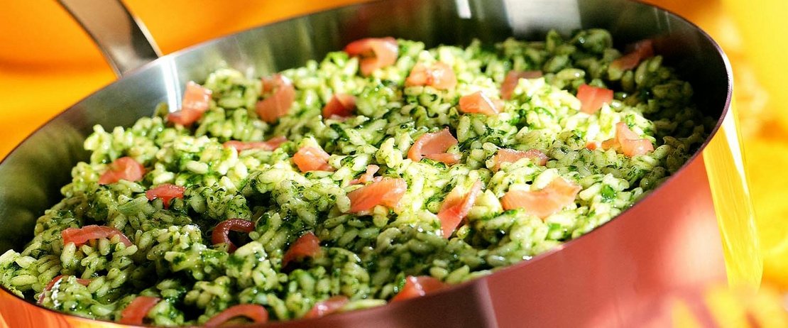 Aujourd’hui typique de du nord de l’Italie, et de la région de Milan en particulier, le risotto est au départ sicilien, d’inspiration méditerranéenne. D’où la présence de safran, de raisins secs et de cannelle dans les recettes médiévales. Le riz à risotto vient du… Japon, d’où sa ressemblance avec le riz à sushi. L’espèce Japonica est cultivée dans la plaine du Pô depuis le 15ème siècle. Il en existe aujourd’hui plusieurs variétés : l’arborio, la carnaroli et le vianole, qui donne un risotto assez liquide et est typique de la Vénétie. La carnaroli est le plus réputé, grâce à sa fermeté et à sa capacité à absorber les saveurs.