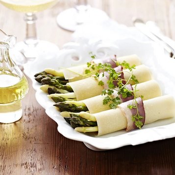 Une fine omelette garnie de fromage d’Etivaz AOP et de ciboulette, roulée comme un wrap, puis tranchée en petites bouchées faciles à manger.
