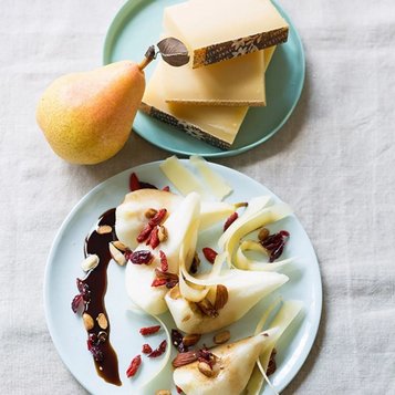 Fraises, pommes ou poires tranchées à tremper dans une petite sauce au yaourt nature et copeaux d’Etivaz AOP pour un sucré-salé tout doux.