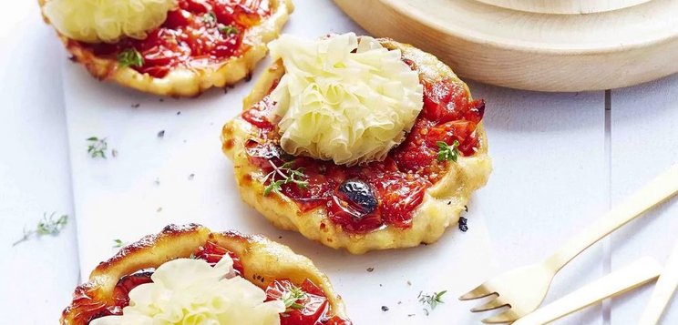 Des petites gaufres salées (à base de pommes de terre, carottes ou courgettes) servent de base à des garnitures variées, sur lesquelles les Rosettes de Tête de Moine AOP ajoutent du raffinement.