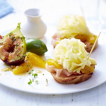 Sur des tranches de pain grillé ou de crackers, proposez des associations comme figue rôtie, ou compotée d’oignon doux et Rosettes de Tête de Moine AOP. Chaque bouchée offre une harmonie de textures et de goûts subtiles.