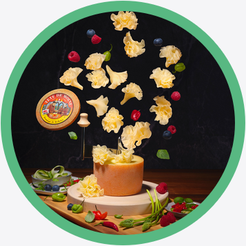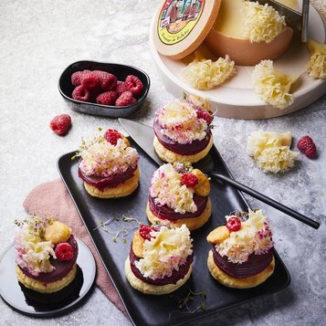 Des mini-poivrons, concombres ou radis évidés garnis d’une crème fraîche aux herbes, puis coiffés d’une Rosette de Tête de Moine AOP. C’est croquant, frais et élégant, avec une belle surprise à la dégustation.