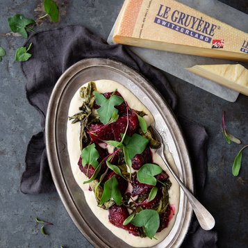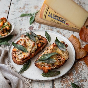 Poire pochée et Gruyère AOP suisse, la saveur du fromage rencontre la fraîcheur fruitée et la douceur d’une poire pochée au vin blanc. Une alliance sucrée-salée qui surprend et séduit.
